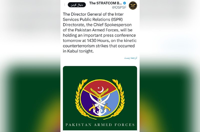 ارتش پاکستان که پیشتر تهدید کرده بود مخالفان خود را در هر نقطهای هدف قرار خواهد داد، فردا نشست خبری درباره این حمله برگزار میکند. این نخستین بار است که حملهای از این نوع در قلب کابل صورت میگیرد؛ پیشتر حملات پاکستان عمدتاً در ولایتهای شرقی افغانستان مانند خوست، ننگرهار و پکتیا انجام میشد.