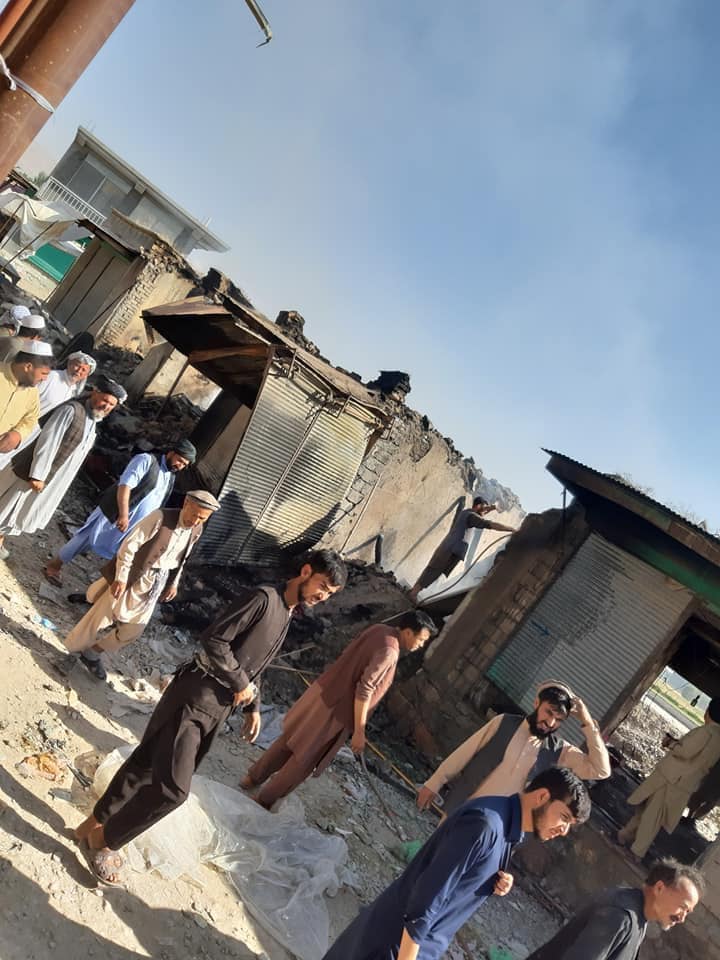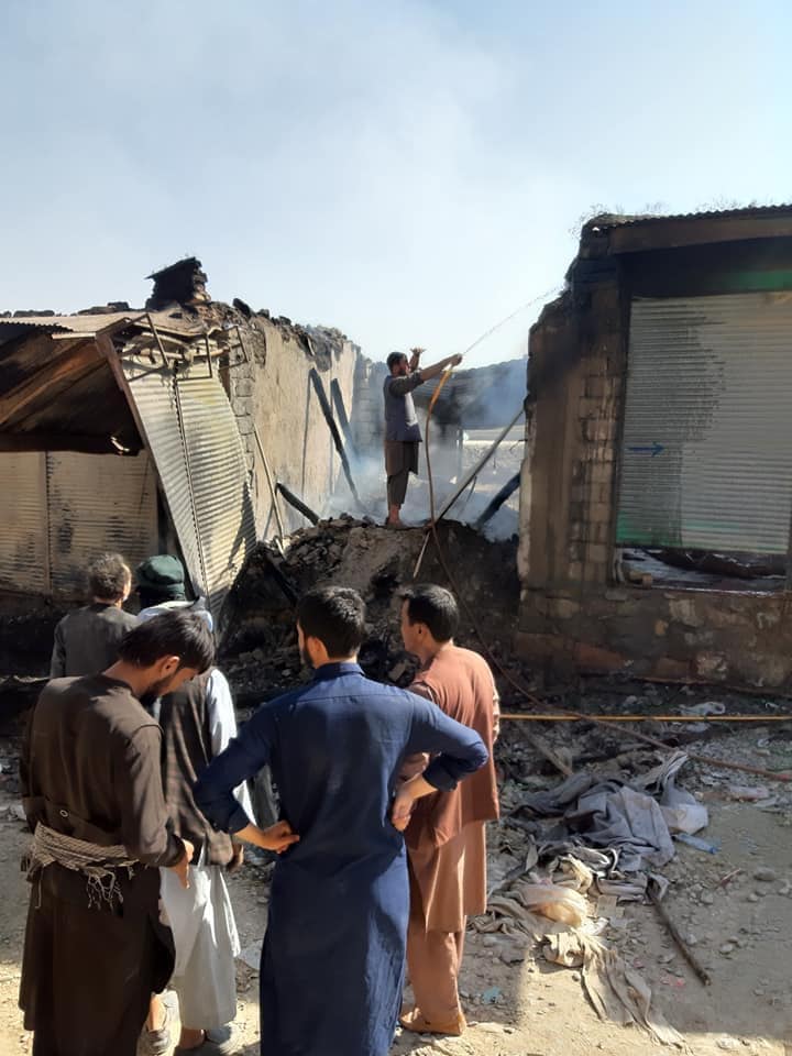 همچنین بر بنیاد گزارش‌هاى خبرنگاران محلى تخار در درگیرى میان طالبان و نیروهاى امنیتى شمارى از دکان‌ها در ولسوالى اشکمش آتش گرفته‌اند.